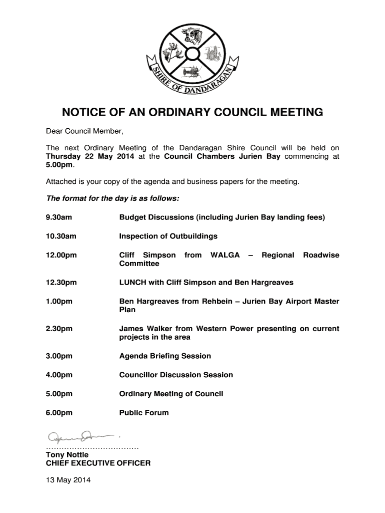 Get the free NOTICE OF AN ORDINARY COUNCIL MEETING - dandaragan wa gov