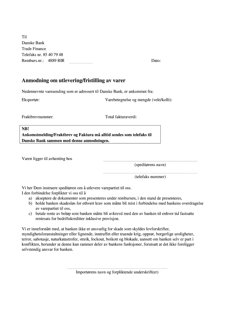 Get the free Anmodning om utleveringfristilling av varer - Danske Bank - danskebank