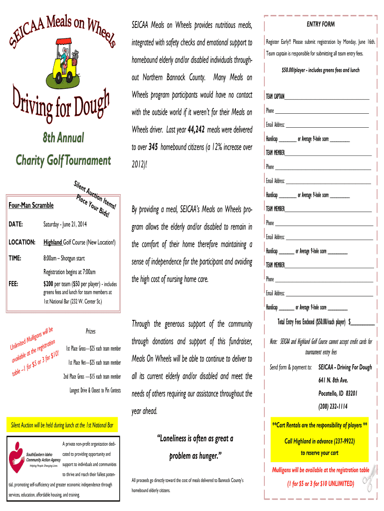SECAM Meals on Wheels provides nutritious meals, ENTRY FORM integrated with safety checks and emotional support to Register Early!! Please submit registration by Monday, June 16th. Home bound elderly