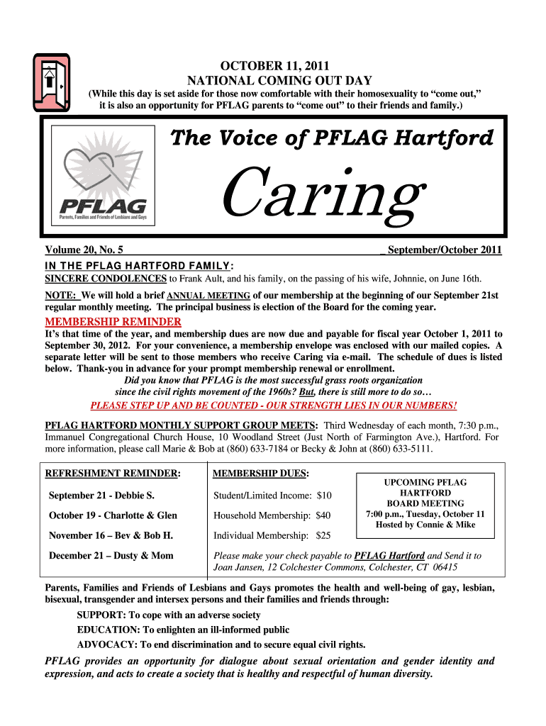 Get the free OCTOBER 11 2011 NATIONAL COMING OUT DAY - PFLAG Hartford - pflaghartford