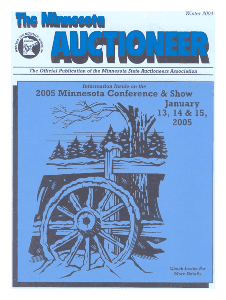 Were not the only place you can advertise a farm or equipment auction... ...but we're the best! Covering Minnesota and Northern Iowa Call Greg 18005331727 ext 607 THE MINNESOTA AUCTIONEER WINTER 2004