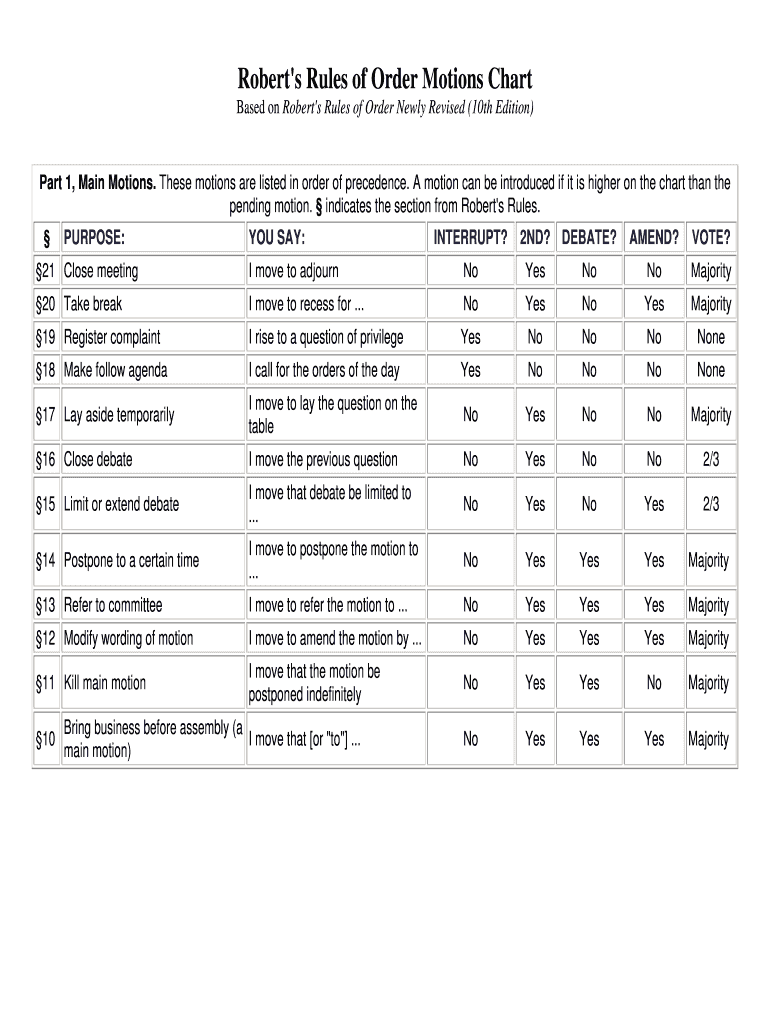 Get the free Robert039s Rules of Order Motions Chart - bcfoecom