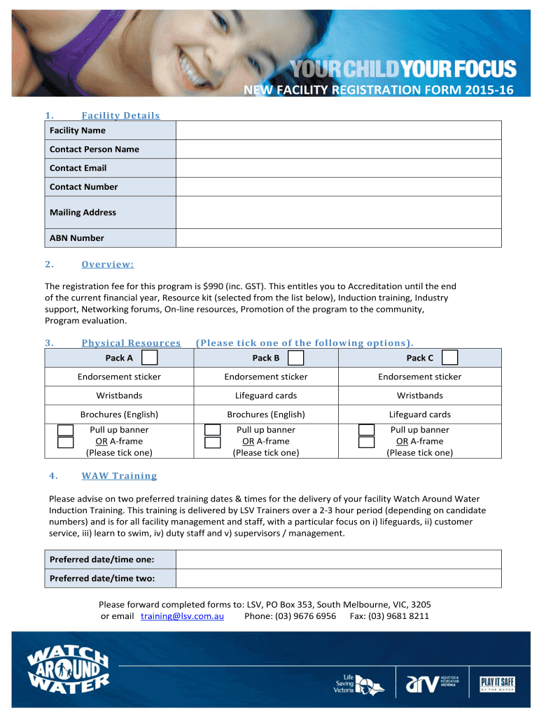 Get the free NEW FACILITY REGISTRATION FORM 2015-16 - lsvcomau