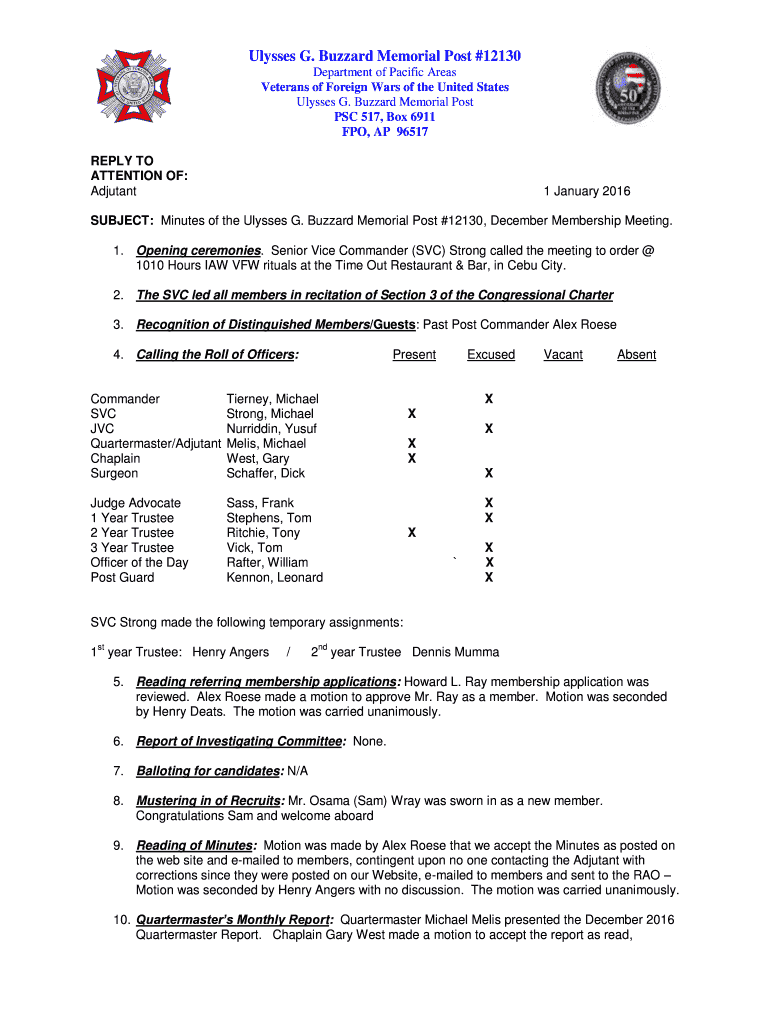 Get the free Buzzard Memorial Post - vfwpost12130