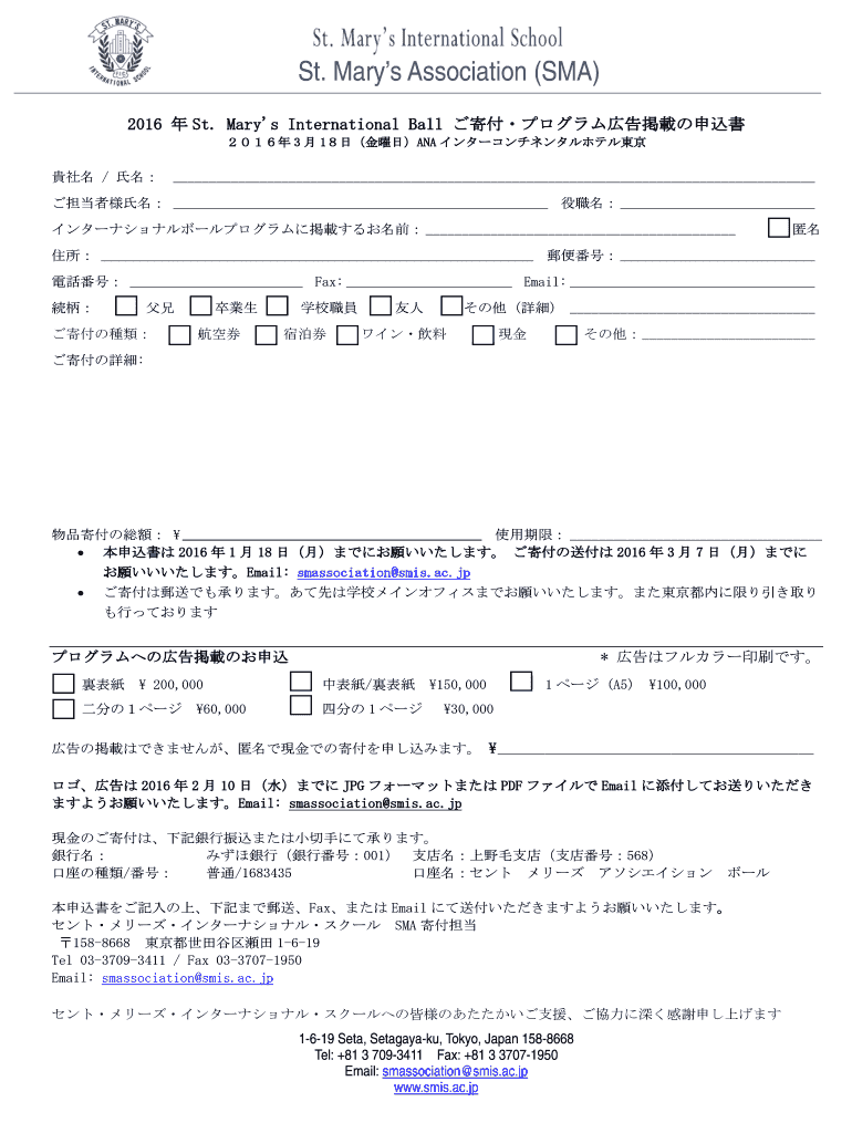 St. Mary's Association (SMA) 2016 St. Mary's International Ball 3 1ANA / Fax: Email: