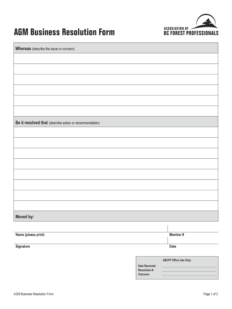 Get the free AGM Business Resolution Form - member abcfp