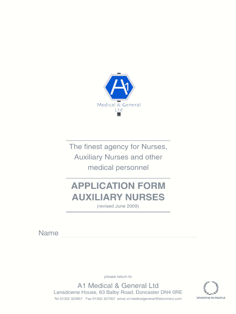 The finest agency for Nurses, Auxiliary Nurses and other medical personnel APPLICATION FORM AUXILIARY NURSES (revised June 2009) Name please return to A1 Medical & General Ltd Landowner House, 63