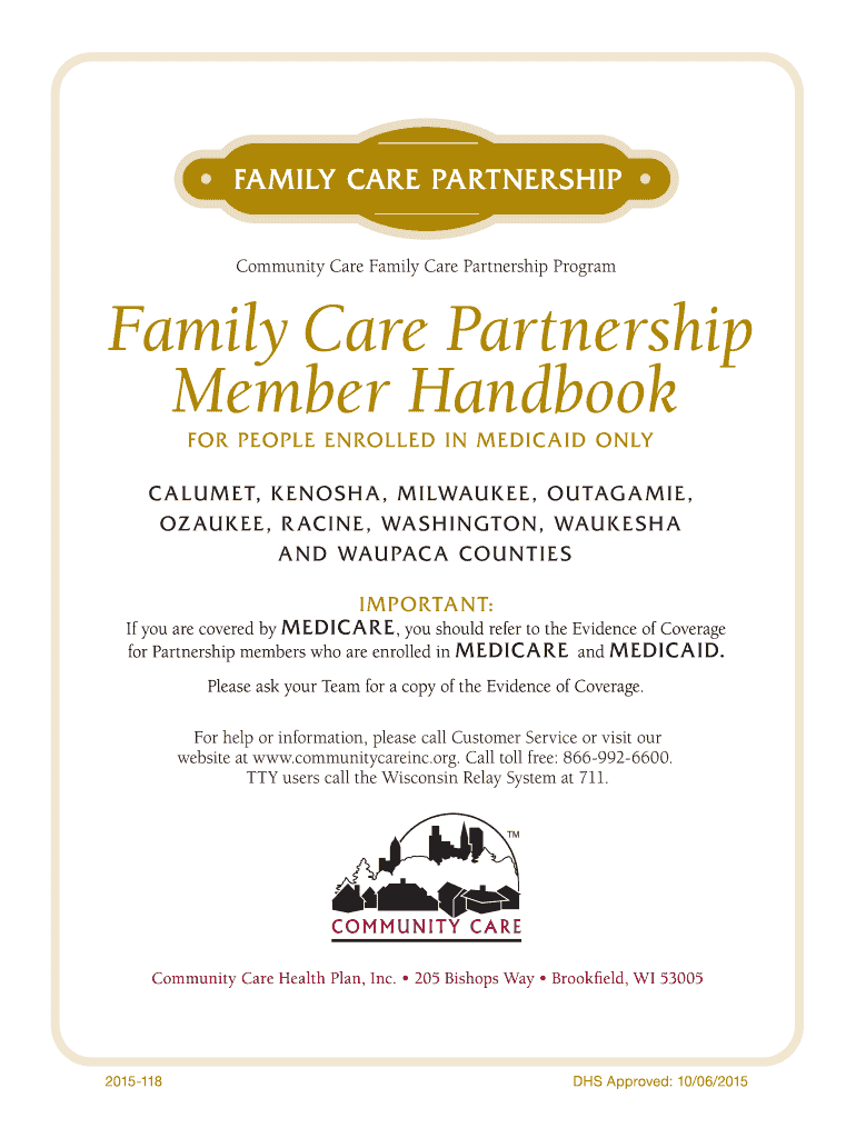 FAMILY CARE PARTNERSHIP Community Care Family Care Partnership Program Family Care Partnership Member Handbook FOR PEOPLE ENROLLED IN MEDICAID ONLY C A LU M ET, K E N OS H A, M I LUAU K EE, OF TAG
