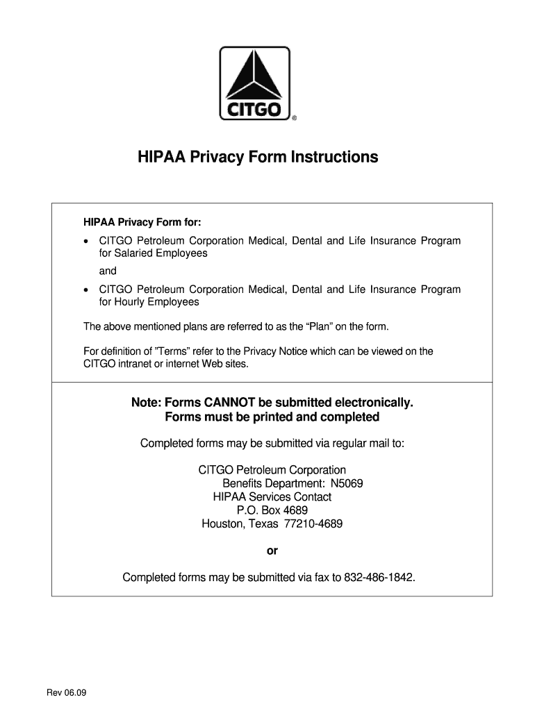 HIPAA Privacy Form Instructions HIPAA Privacy Form for: CIT GO Petroleum Corporation Medical, Dental and Life Insurance Program for Salaried Employees and CIT GO Petroleum Corporation Medical, Dental
