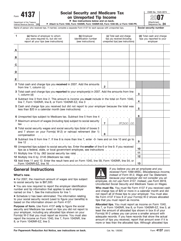 Fill out your 2007 form 4137 fill-in online with pdfFiller!
