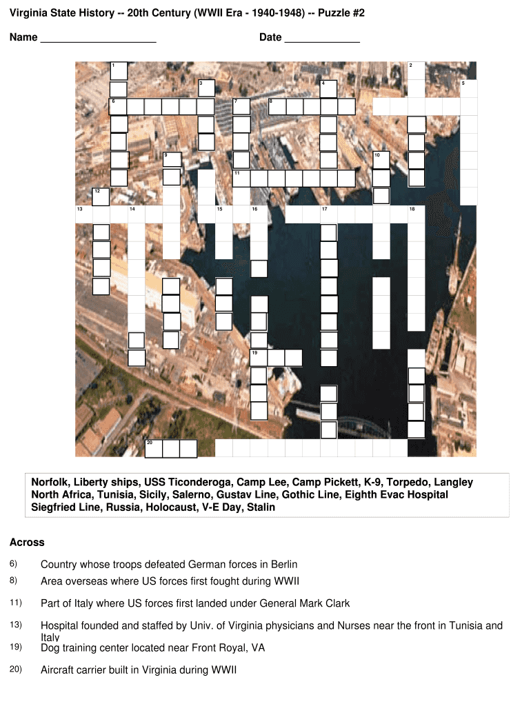 Get the free Virginia State History 20th Century (WWII Era 19401948) Puzzle #2 - virginiahistorys...