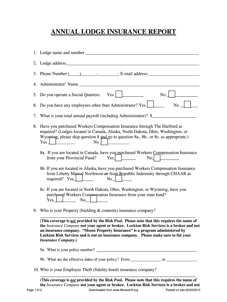 Get the free ANNUAL LODGE INSURANCE REPORT 2-23-2010 - illinoismoose