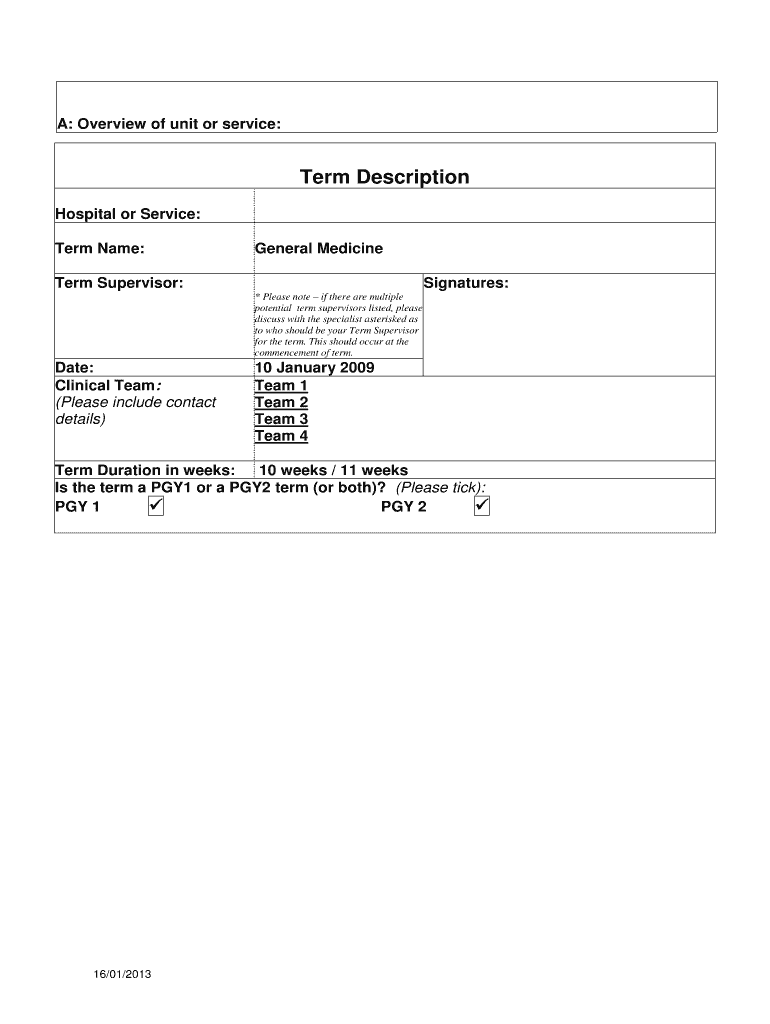 A: Overview of unit or service: Term Description Hospital or Service: Term Name: General Medicine Term Supervisor: Signatures: * Please note if there are multiple potential term supervisors listed,