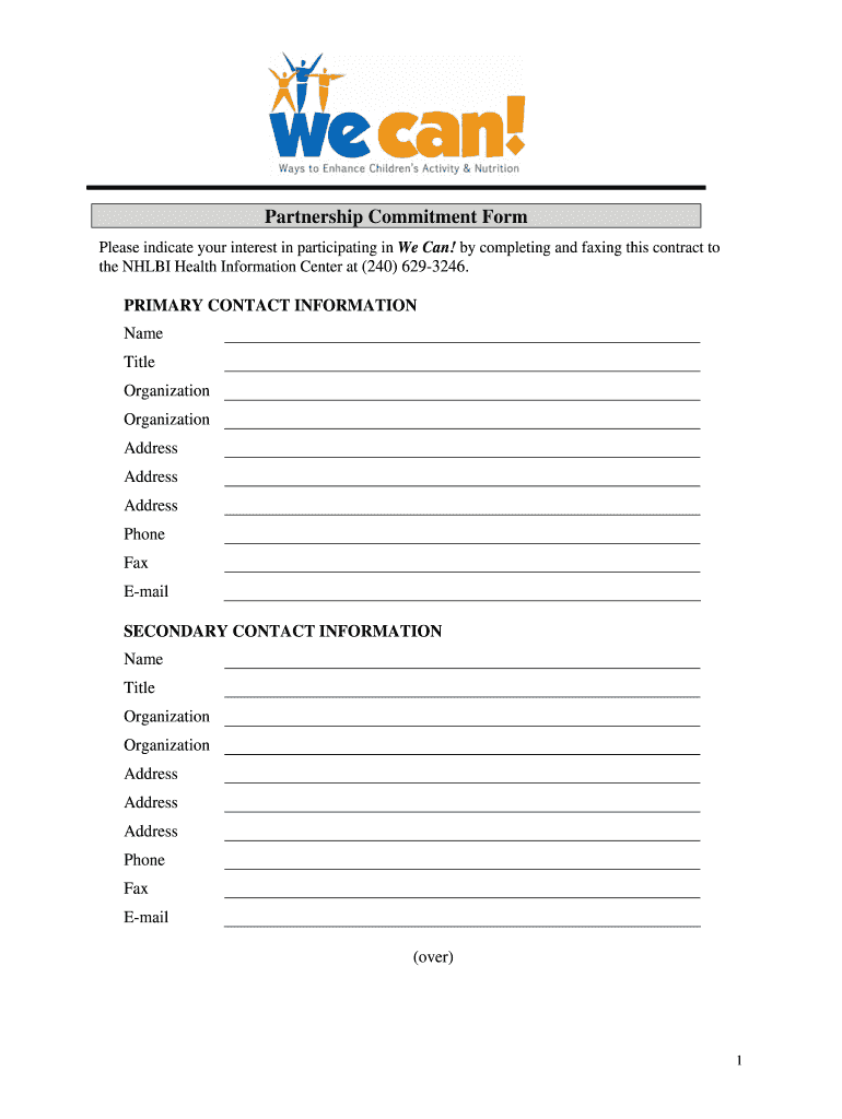 Get the free We Can! Partnership Commitment Form. Obesity - nhlbi nih
