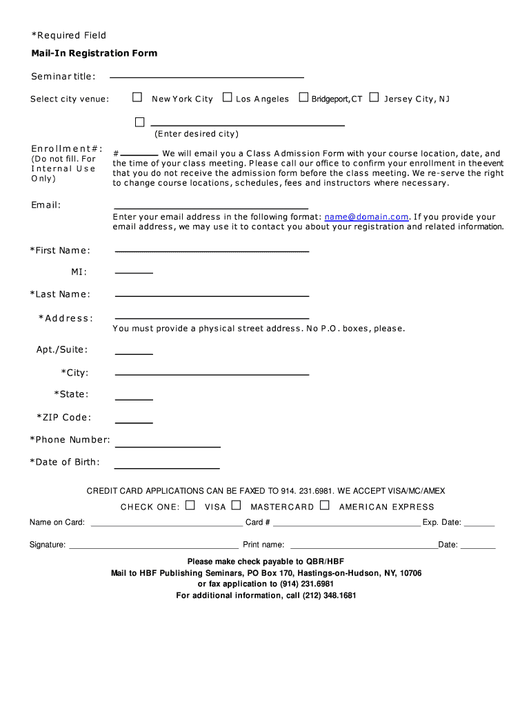 *R e quire d Field Mailing Registration Form Se m dinar title : Select city venue: En RO l m e n t #: (D o not fill. For I note RNA l U s e Only) New York City Los A Angeles Bridgeport, CT J ERS a