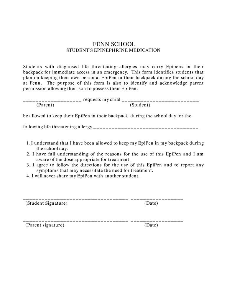 Fenn School Students Epinephrine is not the form you're looking for?Search for another form here.