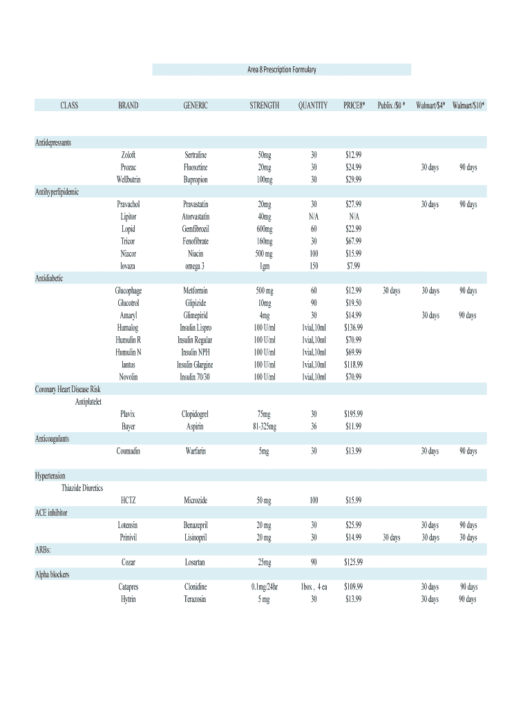 Area 8 Prescription FormularyCLASSBRANDGENERICSTRENGTHQUANTITYPRICE8×Zoloft