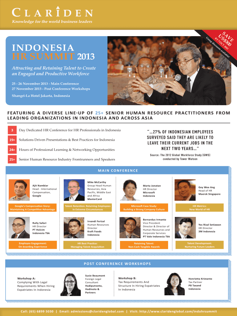 Get the free E 3 300 INDONESIA HR SUMMIT 2013 - Clariden Global
