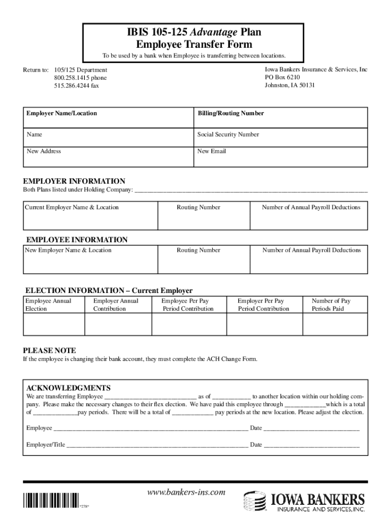 Any employee of a bank transferring between locations within the same holding company can use the Employee Transfer Form. Both the employee and employer must sign to validate the transfer.
