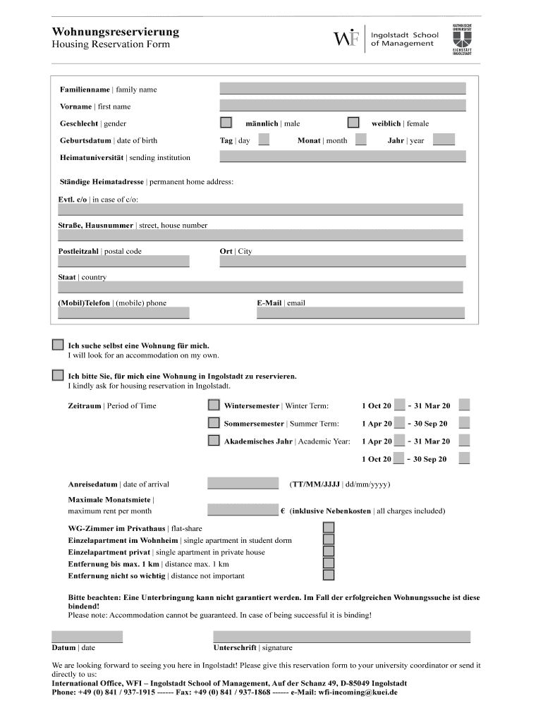 Wohnungsreservierung Housing Reservation Form is not the form you're looking for?Search for another form here.