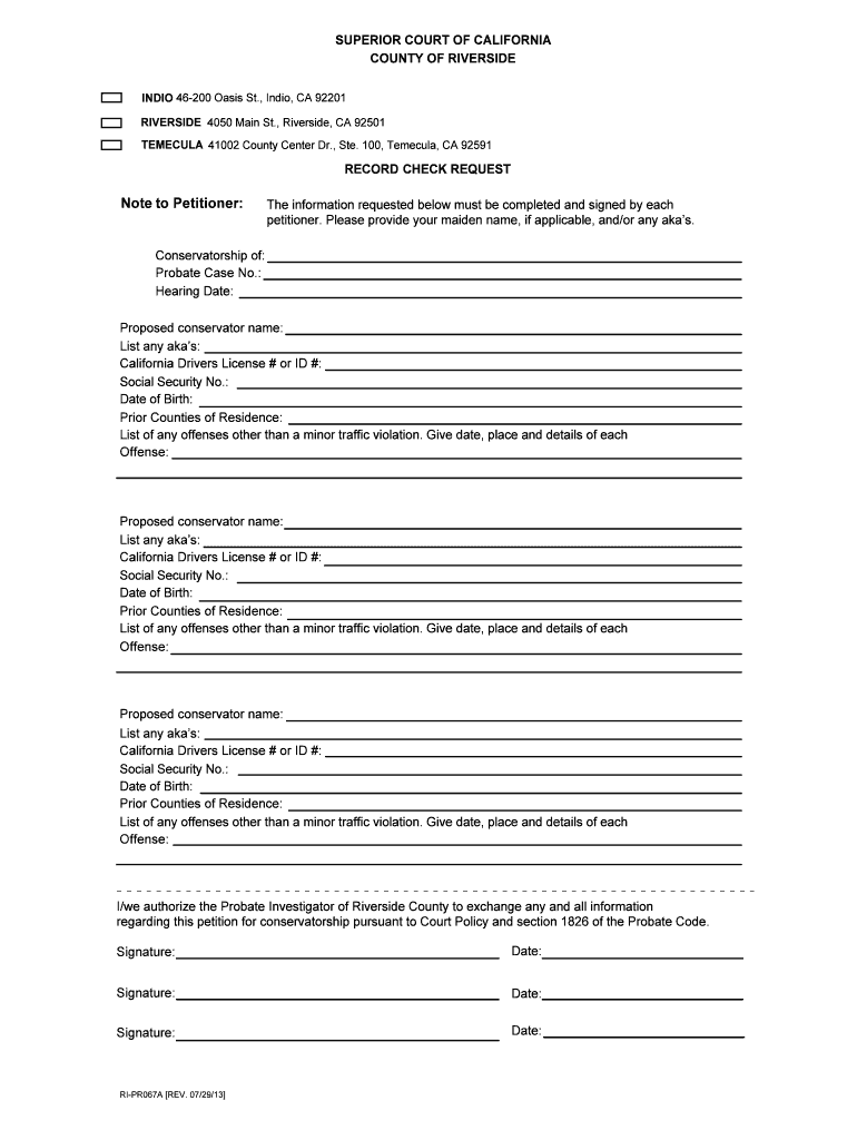 SUPERIOR COURT OF CALIFORNIA COUNTY OF RIVERSIDE INDIO 46200 Oasis St., Indio, CA 92201 RIVERSIDE 4050 Main St., Riverside, CA 92501 TEMECULA 41002 County Center Dr., Ste. 100, Temecula, CA 92591