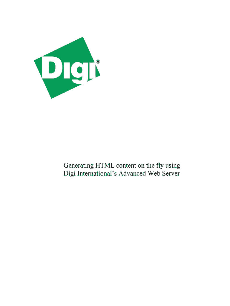 Este documento describe un método para generar contenido HTML dinámicamente utilizando el Servidor Web Avanzado de Digi International (AWS) en aplicaciones web. Aborda cómo crear páginas web que