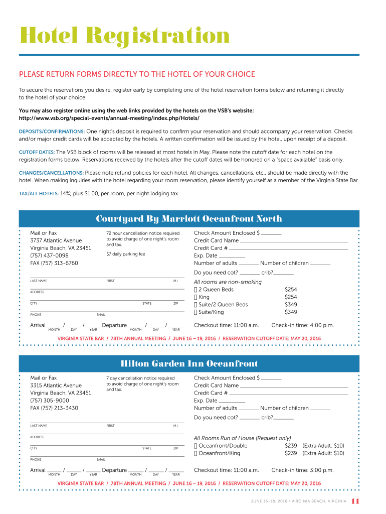 Get the free PLEASE RETURN FORMS DIRECTLY TO THE HOTEL OF YOUR CHOICE - vsb