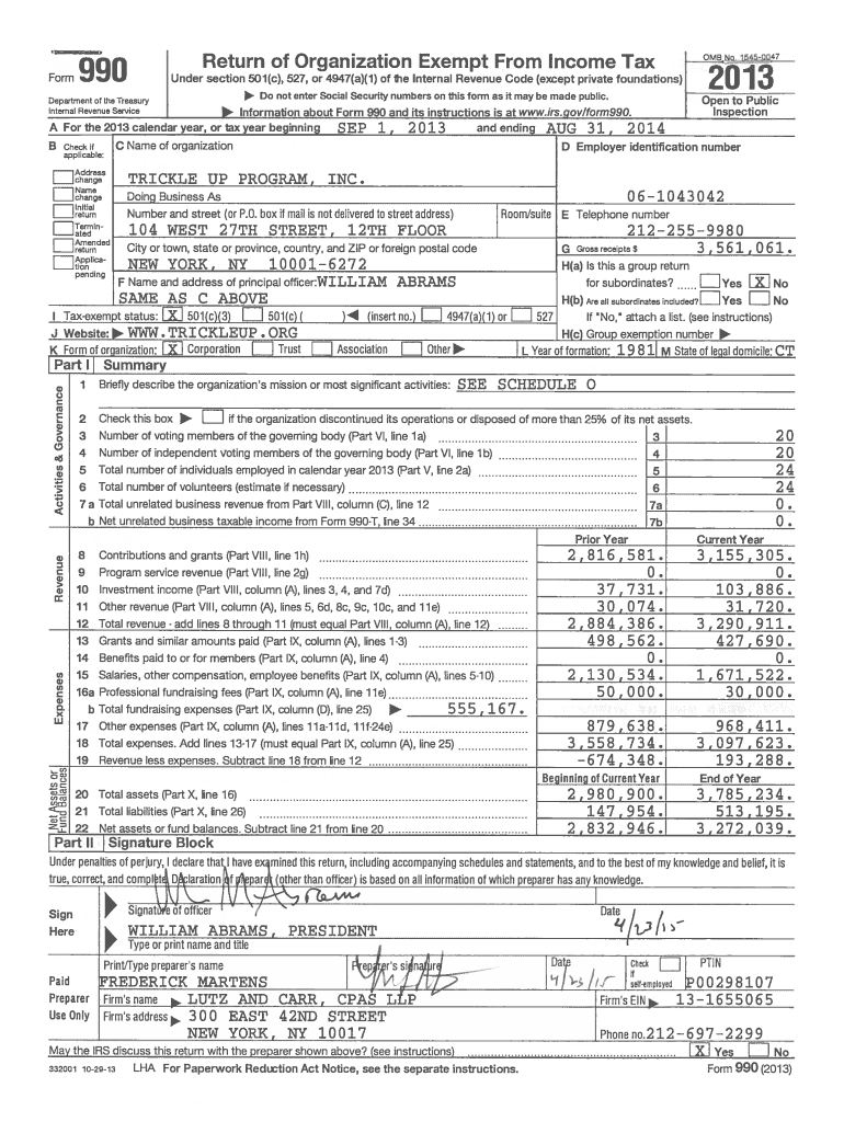 TRICKLE UP PROGRAM, INC. Part III Statement of Program Service Accomplishments 061043042 Form 990 (2013) 1 Check if Schedule O contains a response or note to any line in this Part III Briefly describe