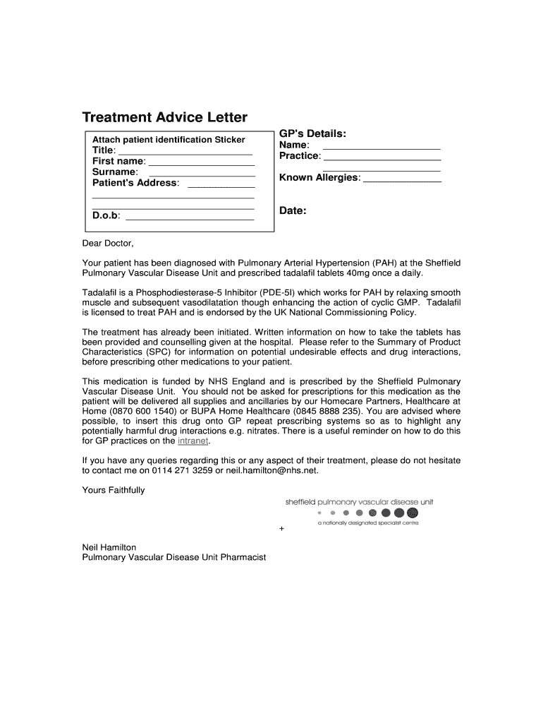 Get the free Treatment Advice Letter - intranet sheffieldccg nhs