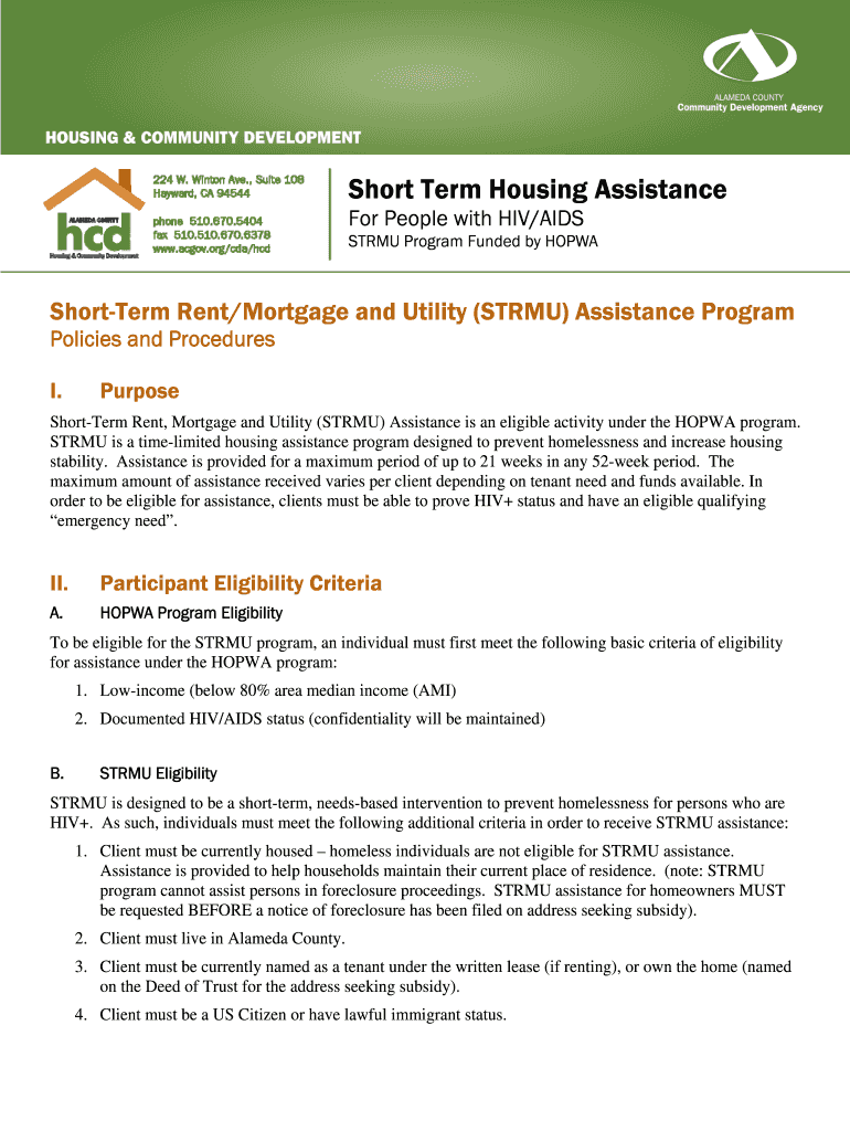 STR MU Program Funded by HOPWAShortTerm Rent/Mortgage and Utility (STR MU) Assistance Program