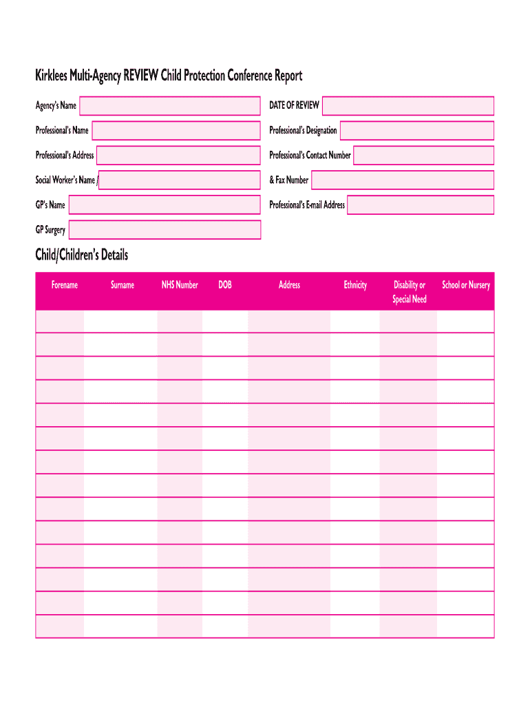 Get the free Kirklees Multi-Agency REVIEW Child Protection Conference - kirkleessafeguardingchild...
