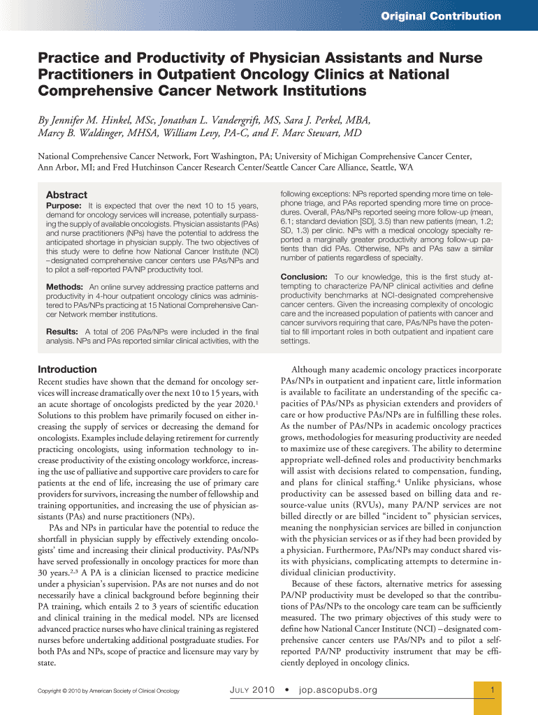 Original ContributionPractice and Productivity of Physician Assistants and Nurse