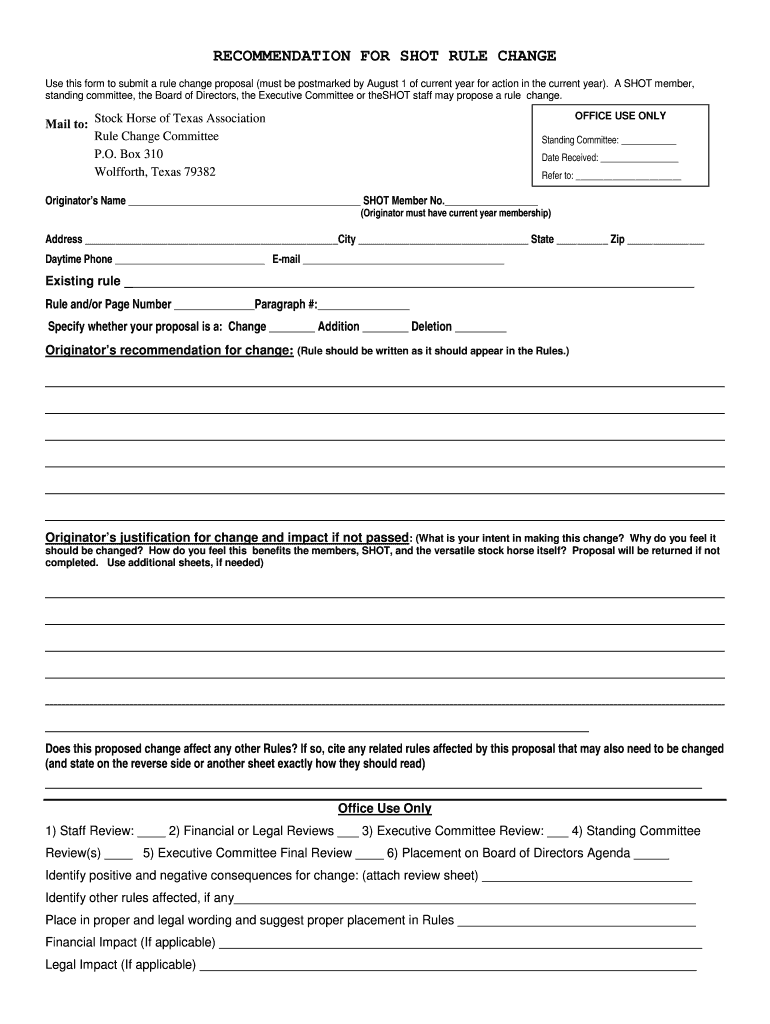 Get the free RECOMMENDATION FOR SHOT RULE CHANGE - stockhorsetexas