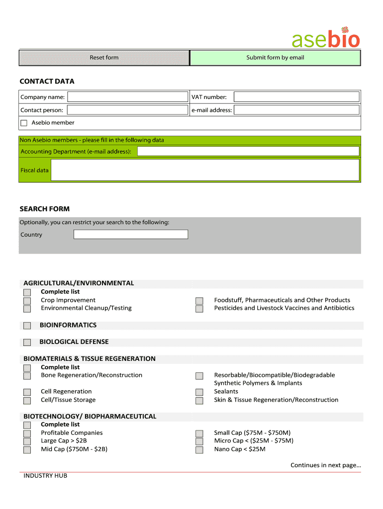 Individuals or companies working in the biotechnology industry are required to file search form - asebiocom.