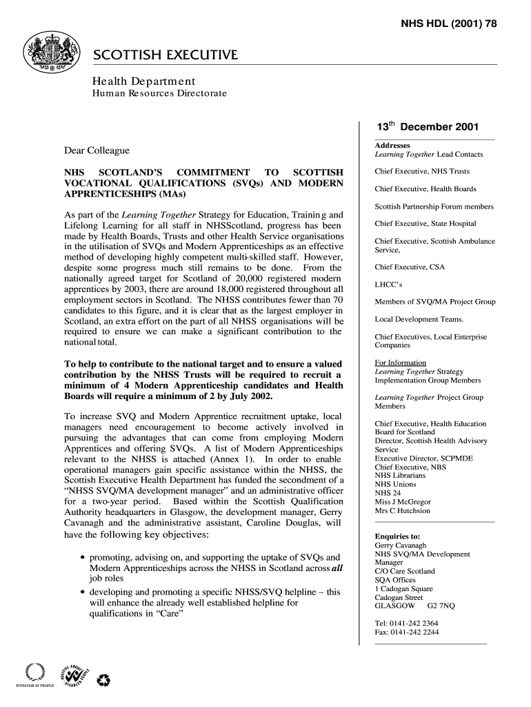 NHS HDL (2001 78 abcdefghijklm Health Department Human Resources Directorate 13th December 2001 Dear Colleague NHS SCOTLAND COMMITMENT TO SCOTTISH VOCATIONAL QUALIFICATIONS (SQS) AND MODERN APPRENTICESHIPS