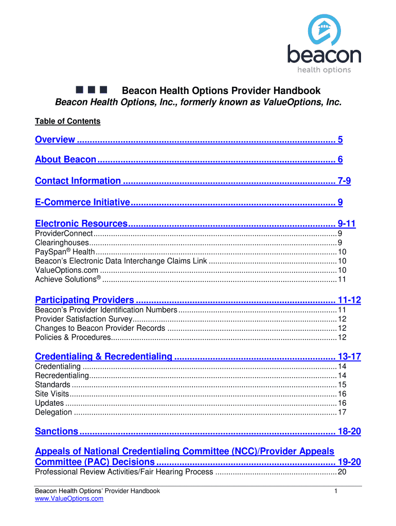 Get the free Beacon Health Options Provider Handbook Beacon