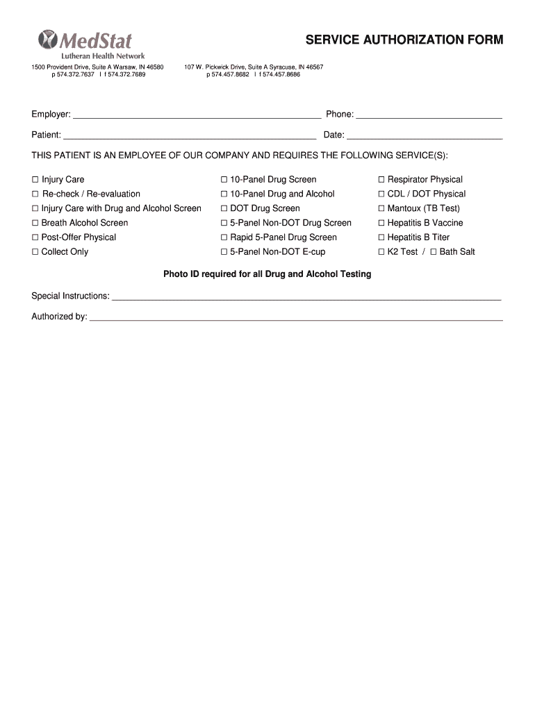 Get the free SERVICE AUTHORIZATION FORM - Lutheran Health