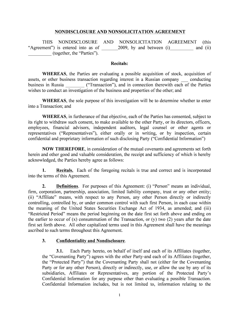 How to fill out a nondisclosure and nonsolicitation agreement: