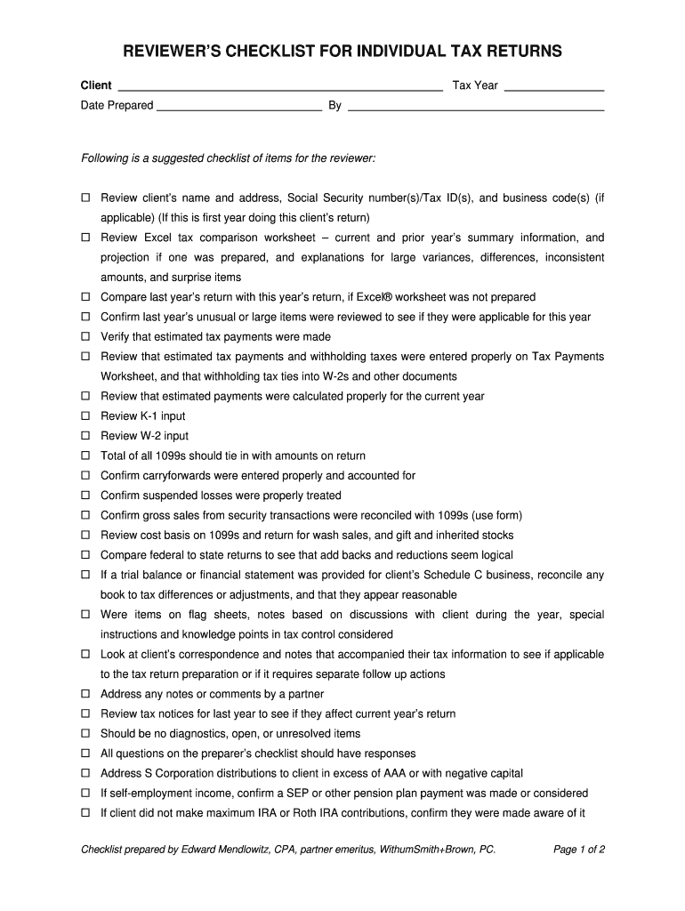 Get the free REVIEWER39S CHECKLIST FOR bINDIVIDUAL TAX RETURNSb