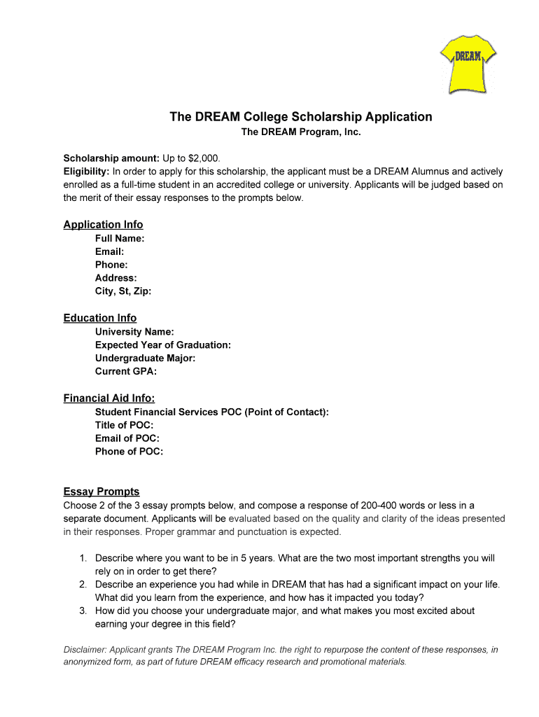 Get the free The DREAM College Scholarship Application - dreamprogram