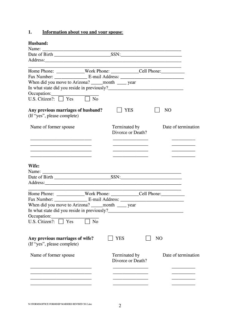 127 N. MARINA STREET PRESCOTT, ARIZONA 86301 PHONE 9284439934 FAX 9284439938 www.azelderlaw.com Information For Estate Planning (Married Individual) Please complete the following form to the best