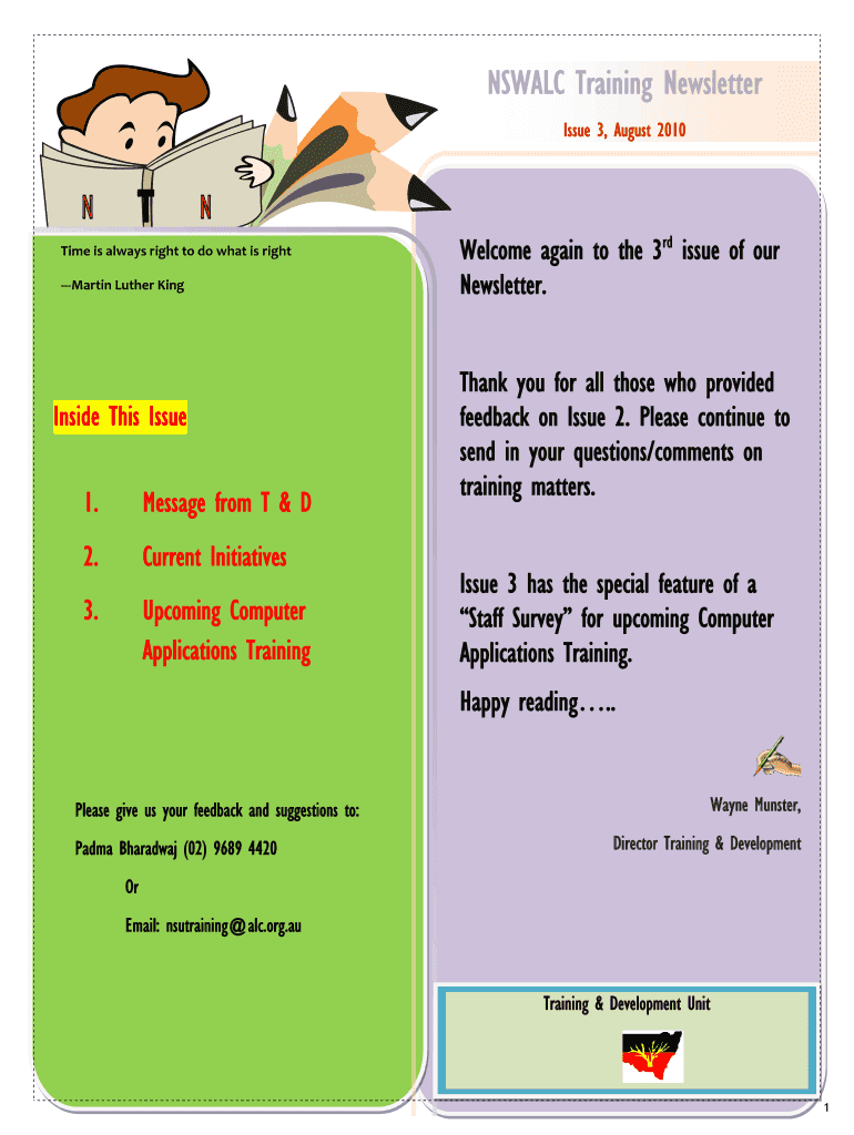 How to fill out nswalc training newsletter: