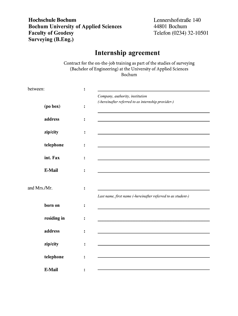 Hochschule Bochum University of Applied Sciences Faculty of Geodesy Surveying (B.Eng.) Lennershofstrae 140 44801 Bochum Telephone (0234 3210501 Internship agreement Contract for the onthejob training