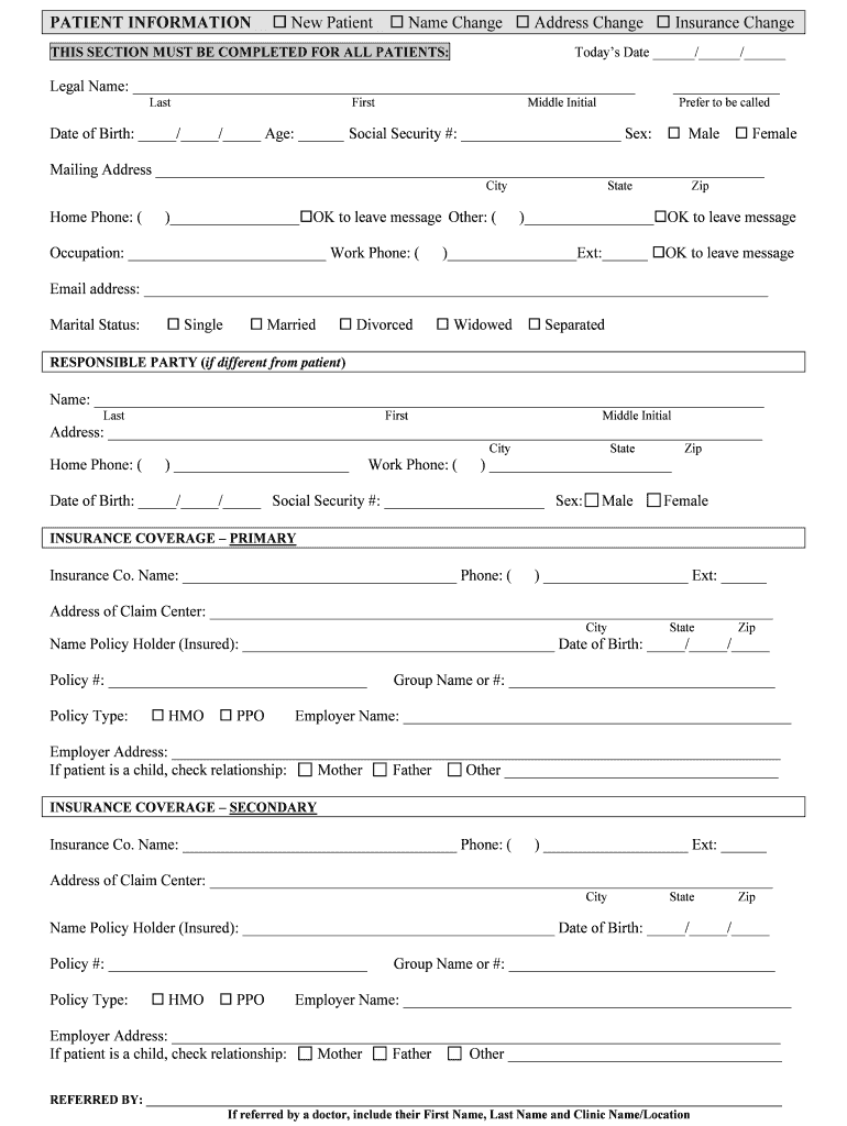 Get the free PATIENT INFORMATION New Patient Name Change Address Change Insurance Change