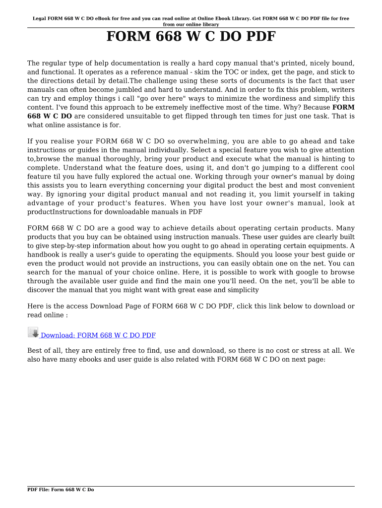 Legal FORM 668 W C DO e-book for free, and you can read online at Online E-Book Library. Get FORM 668 W C DO PDF file for free from our online library FORM 668 W C DO PDF The regular type of help