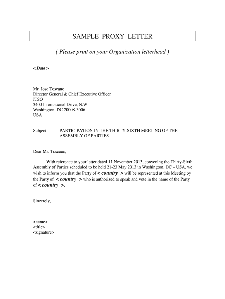 SAMPLE PROXY LETTER (Please print on your Organization letterhead) Date Mr. Jose Tosca no Director General & Chief Executive Officer ITS 3400 International Drive, N.W. Washington, DC 200083006 Subject:PARTICIPATION