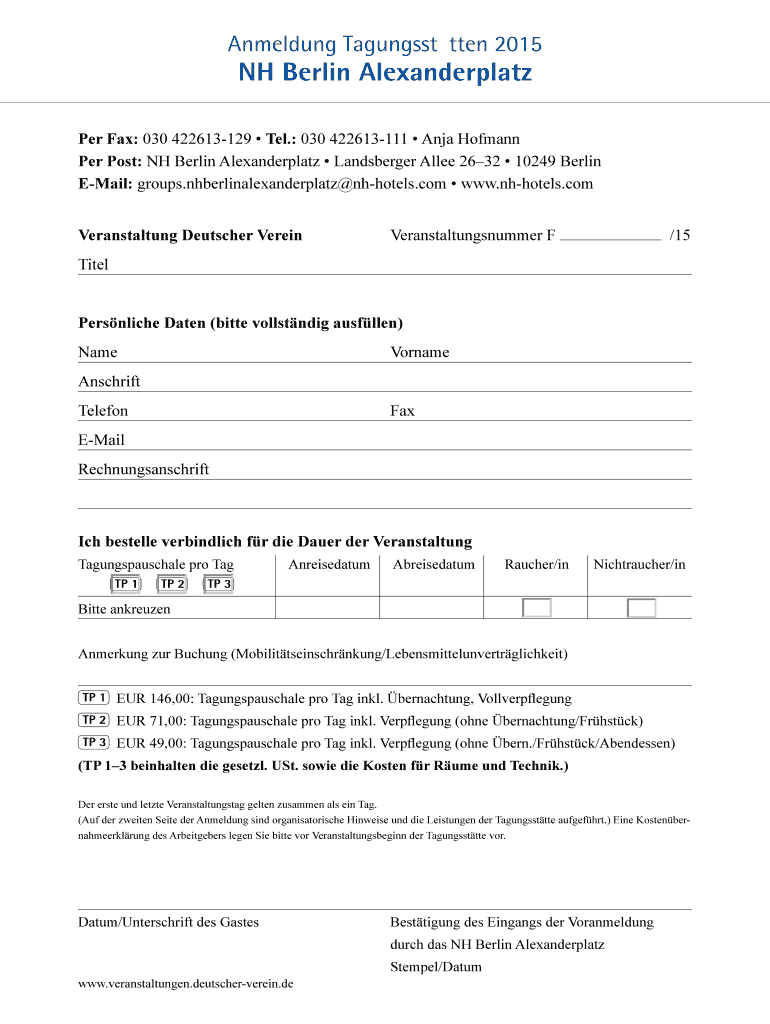 Amending Tagungssttten 2015 NH Berlin Alexanderplatz Per Fax: 030 422613129 Tells.: 030 422613111 Anja Hoffmann Per Post: NH Berlin Alexanderplatz Landsteiner Allen 2632 10249 Berlin Email: groups.nhberlinalexanderplatz