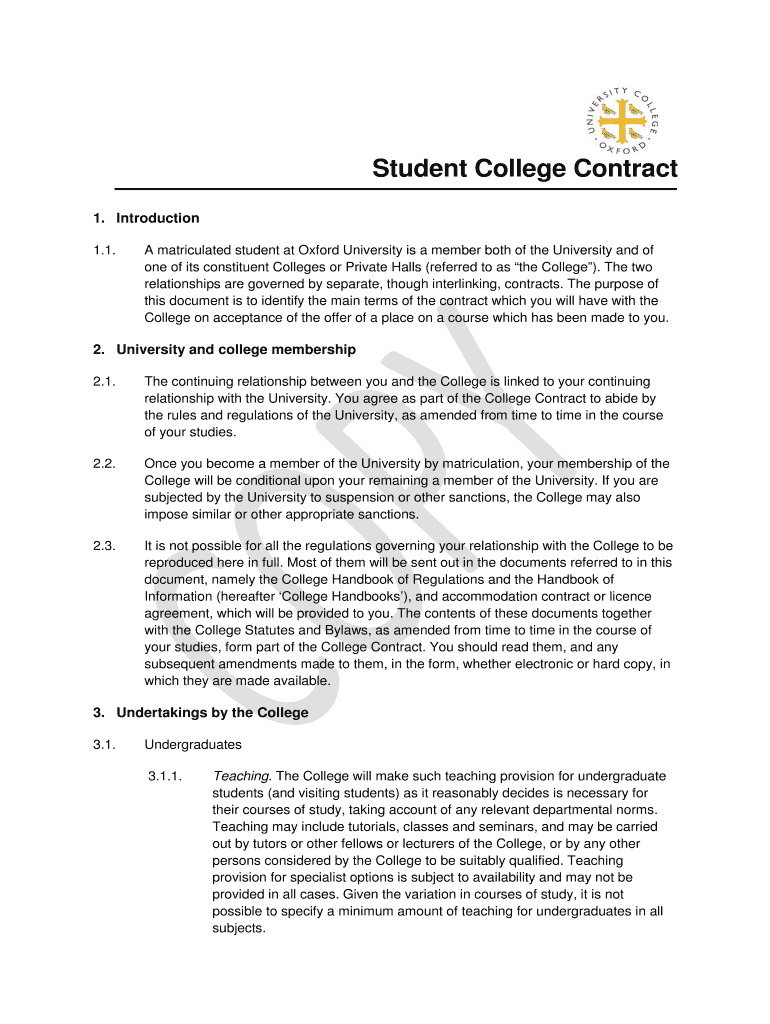 Get the free Student College Contract - University College Oxford - univ ox ac