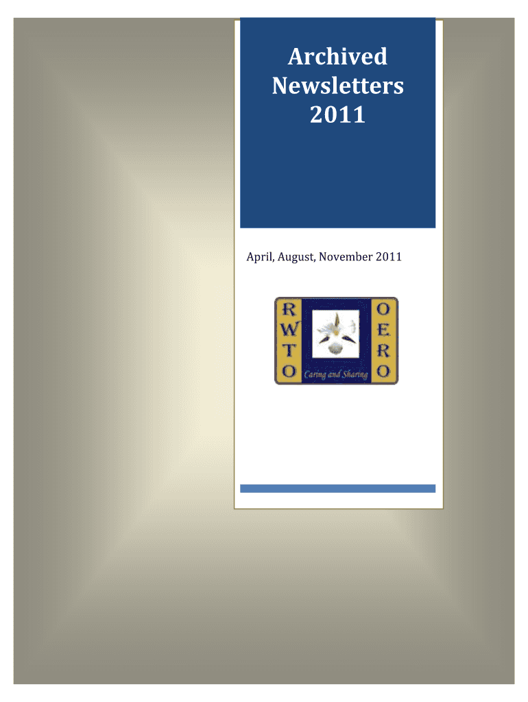 Archived Newsletters 2011 April, August, November 2011 ANNUAL SPRING MEETING & LUNCHEON Tuesday, May 3, 2011, Social Hour from 11 a.m. 12 p.m. Lunch 12:15 p.m. OTHER PLACE CATERING 1395 Walker Rd.