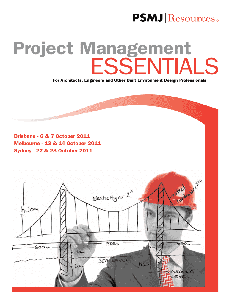 Project Management ESSENTIALS For Architects, Engineers and Other Built Environment Design Professionals Brisbane 6 & 7 October 2011 Melbourne 13 & 14 October 2011 Sydney 27 & 28 October 2011 Maximizing